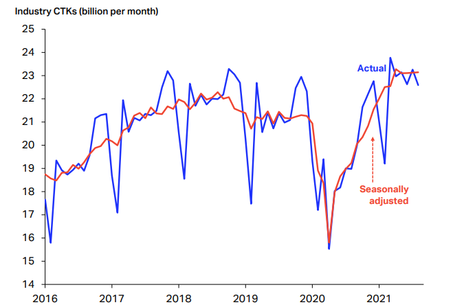 据国际航空运输协会IATA数据,国际空运虽然同样处于运力紧张状态,但随着国际空运与日俱增的运输量与航空里程,在当下环境下,国际空运货运运力正缓慢恢复。